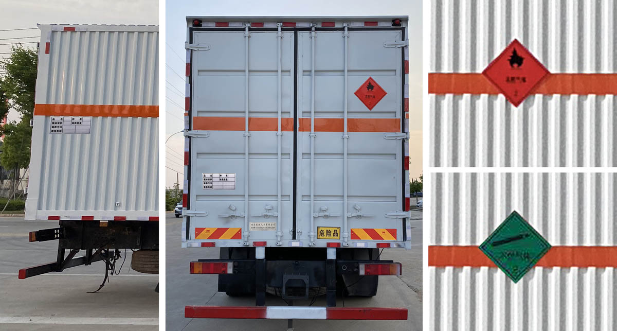 | 1、該車適用于運(yùn)輸危險(xiǎn)品。廂體頂部封閉,不可開(kāi)啟。運(yùn)輸具有獨(dú)立容器包裝的易燃?xì)怏w及運(yùn)輸具有獨(dú)立容器包裝的非易燃無(wú)毒氣體。運(yùn)送危險(xiǎn)品類項(xiàng)號(hào):2.1,2.2。液壓升降尾板收起狀態(tài)水平長(zhǎng)度為290mm,尾板質(zhì)量為550kg。2、側(cè),后防護(hù)材料均為Q235,螺栓連接;后防護(hù)截面尺寸120×60mm,下邊緣離地高490mm。選裝后部無(wú)液壓尾板。3、隨底盤選裝平頂駕駛室;選裝駕駛室前面罩;高頂駕駛室頂部氣喇叭為選裝件;駕駛室前角擾流板為選裝件。僅選用排氣管前置、限速裝置(限速80km/h)、前輪盤式制動(dòng)及子午線輪胎的底盤;安裝帶衛(wèi)星定位功能的行駛記錄儀。ABS型號(hào)/生產(chǎn)廠家:ABS 8/東科克諾爾商用車制動(dòng)系統(tǒng)(十堰)有限公司。發(fā)動(dòng)機(jī)/油耗值(L/100km)對(duì)應(yīng)關(guān)系為:DDi75E350-60/38.1。后軸采用空氣懸架,轉(zhuǎn)向輪裝備輪胎爆胎應(yīng)急防護(hù)裝置。 | |||